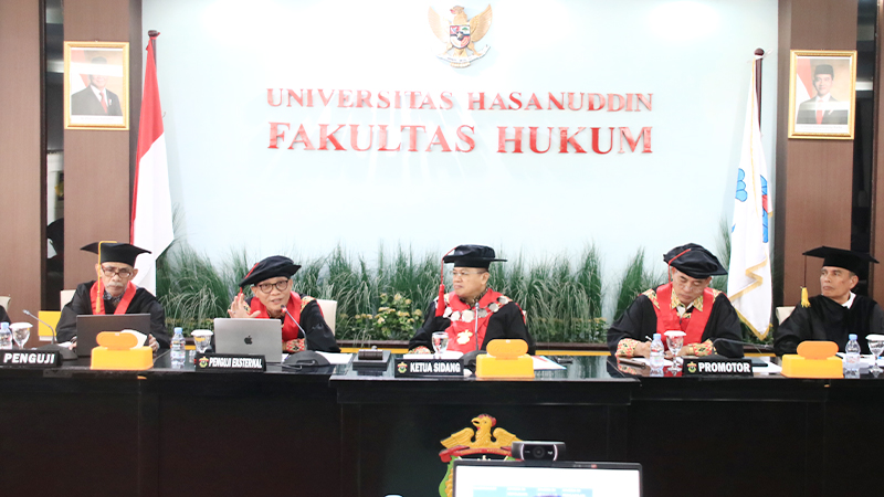 Bertindak sebagai promotor adalah Prof. Dr. Musakkir, S.H., M.H. dengan Dr. Syamsuddin Muchtar, S.H., M.H. dan Dr. Wiwie Heryani, S.H., M.H. sebagai Ko-Promotor. Sementara itu, penguji lainnya terdiri atas Prof. Dr. Muhadar, S.H., M.S., Prof. Dr. Slamet Sampurno Soewondo, S.H., M.H., DFM., Prof. Dr. Abdul Maasba Magassing, S.H., M.H., dan Dr. Nur Azisa, S.H., M.H.