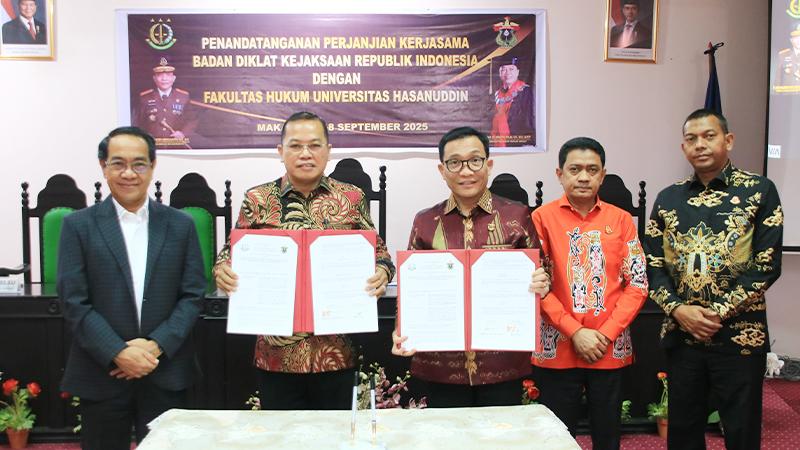 Fakultas Hukum Unhas bersama Badan Pendidikan dan Pelatihan (Badiklat) Kejaksaan RI secara resmi sepakat menjalin kerja sama. Penandatanganan Perjanjian Kerja Sama yang berlangsung pada Kamis (18/9) di Ruang Video Conference FH Unhas ini menandai langkah strategis dalam memperkuat sinergi antara dunia akademis dan lembaga penegak hukum guna mendukung pendidikan, penelitian, dan pengabdian masyarakat secara terintegrasi. Kegiatan ini dihadiri Kepala Badiklat Kejaksaan RI Dr. Leonard Eben Ezer Simanjuntak, S.H., M.H., Rektor Unhas Prof. Dr. Ir. Jamaluddin Jompa, M.Sc. Dekan FH Unhas Prof. Dr. Hamzah Halim, S.H., M.H., M.A.P. Wakajati Sulsel Robert M. Tacoy, S.H., M.H., dan Kepala Pusat Manajemen Pendidikan dan Pelatihan Badiklat Kejaksaan Dr. Teuku Rahman, S.H., M.H.
