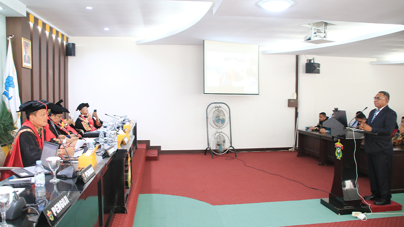 Fakultas Hukum Unhas menggelar Sidang Promosi Doktor pada Kamis (25/9), Nixon Nikolaus Nilla mempertahankan Disertasinya yang berjudul “Perlindungan Hukum Masyarakat Hukum Adat Papua dalam Pelestarian Fungsi Hutan Adat untuk Mendukung Pengelolaan Hutan Berkelanjutan”. Sidang Promosi dipimpin oleh Dekan FH Unhas Prof. Dr. Hamzah Halim, S.H., M.H., M.A.P. sekaligus Penguji, dan bertindak sebagai Promotor Prof. Dr. Aswanto, S.H., M.Si., DFM., serta Ko-Promotor Prof. Dr. Abdul Razak, S.H., M.H., dan Prof. Dr. A. M. Yunus Wahid, S.H., M.Si. Hadir sebagai Penguji Eksternal Jaksa Agung Muda Bidang Pengawasan (JAMWAS) Kejagung RI Dr. Rudi Margono, S.H., M.Hum. Penguji lainnya hadir Prof. Dr. Muhadar, S.H., M.S. dan Prof. Dr. A. M. Syukri Akub, S.H., M.H.